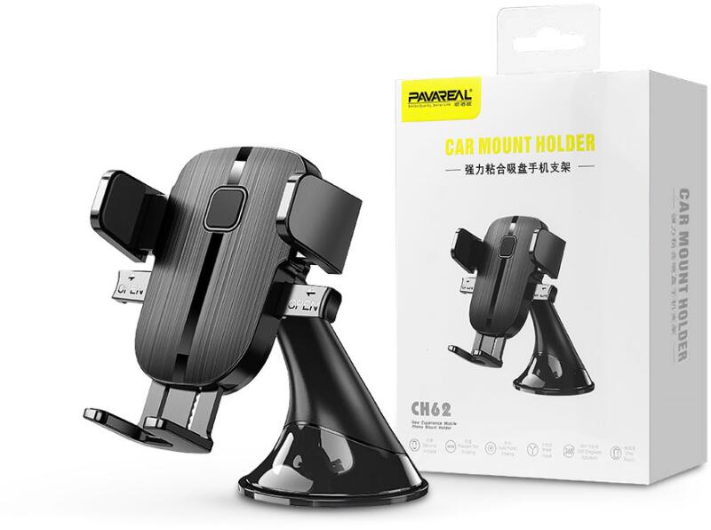 PAVAREAL automata autós tartó. A szélvédőre vagy a műszerfalra szerelhető. Automatikus karfeszítés: az automatikus nyitó- és szorítómechanizmus egy kézzel működtethető. Csak helyezze az okostelefont a tartóba, és a szorítókarok bezáródnak és szilárdan rögzítik az okostelefont. A gyorskioldó gomb könnyű érintése automatikusan kinyitja a karokat. A tartó alkalmas a s