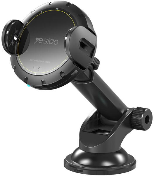 Yesido - Vezeték nélküli töltéssel rendelkező autós tartó (C77) - Kihúzható kar műszerfalhoz, szélvédő, szellőző, 15 W - fekete