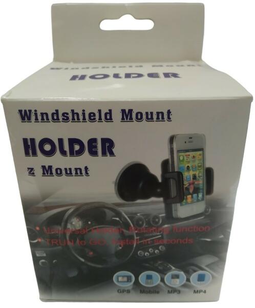 -rövidszárú -szélvédőre rögzíthető tapadókoronggal -360° fokban forgatható -maximálisan: 9,4 cm széles telefonhoz -oldal irányba gomb megnyomásával állítható, alul kihajtható tartó rész