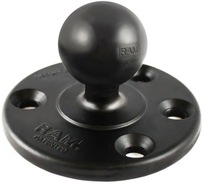 RAM-240U kerek tartó 93 mm átmérőjű csavarokhoz vagy csavarokhoz, 1,5 "-os golyóscsappal. Használat: - mint tartó sík felületekhez, 1,5 hüvelykes csappal. A tartó rögzített, nem eltávolítható rögzítésére szolgál sík felületre. Általában csavarokkal a teherautó padlójának megfelelő helyére, a hajó fedélzetére, kajakos fedélzetre stb. - adapterként 1,5 hüvelykes