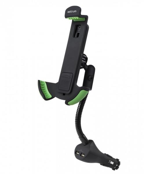 Tabletek és okostelefonok számára kialakított tartó, melyet műszerfalon és szélvédőn is lehet használni. Használható 3,5" - 10" -os tabletekkel és telefonokkal. 360°-ban elforgatható a feje és állítható a dőlésszöge a kényelmes használat érdekében. A készülék tartófejének mérete 105-185 mm-ig állítható, a tartórúd hossza 360mm. A csomagolás tartalmaz egy plus