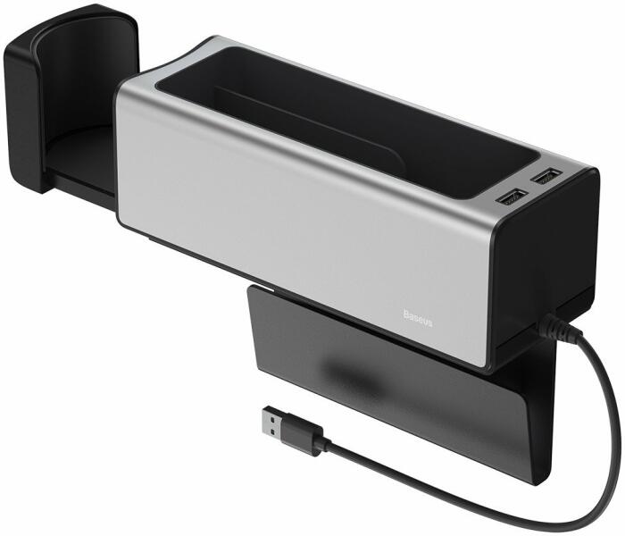Márka: Baseus Modell: CRCWH-A0S Anyaga: Fém + ABS Kábel hossza: 1 m Mérete: 196 x 145 x 70 mm Bemeneti csatlakozók: 2x USB Bemenet: 5V / 2A Fém autós rendszerező Teljesen fémből készült, biztosítja a legmagasabb minőségi kidolgozást. Kihúzható pohártartóval rendelkezik, tápellátása USB kábellel történik. Luxus fém kivitelezés Könnyű alumíniumötvözet, finom textúr