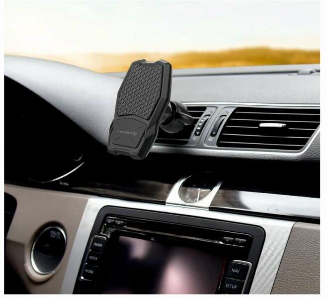 Univerzális autós mágneses tartó telefonkészülékek számára szellőzőrácsra. A mágneses kialakításából adódóan szinte az összes mobilkészülékkel kompatibilis. Egyszerűen és gyorsan alkalmazható, a csíptetőnek köszönhetően különböző méretű rácsokra lehet applikálni. A szellőzőrácson történő használatából adódóan nem zavar a kilátásban, nem takarja e