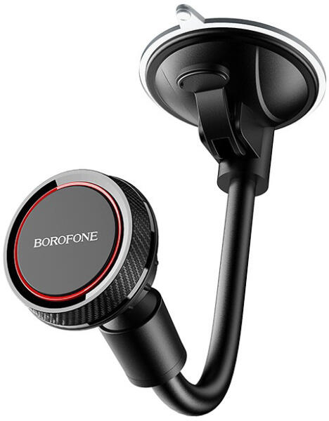 Univerzális mágneses autós telefontartó műszerfalra vagy szélvédőre PC + ABS + Szilikon anyaghasználattal Szénszál mintájú felülettel Flexibilis karral és szilikon tapadókoronggal