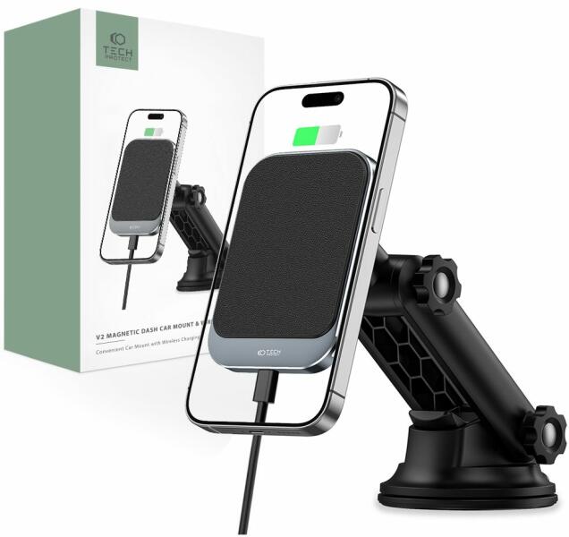 A Tech-Protect MM15W-V2 elegáns és stílusos autós töltő tökéletes megoldás azon emberek számára, akik értékelik a kényelmet és a biztonságot vezetés közben. A mágneses rögzítésnek és a vezeték nélküli töltési funkciónak köszönhetően ennek a terméknek a használata rendkívül egyszerű és kényelmes. A műszerfalra szerelhető tartót MagSafe funkcióval rendelkez