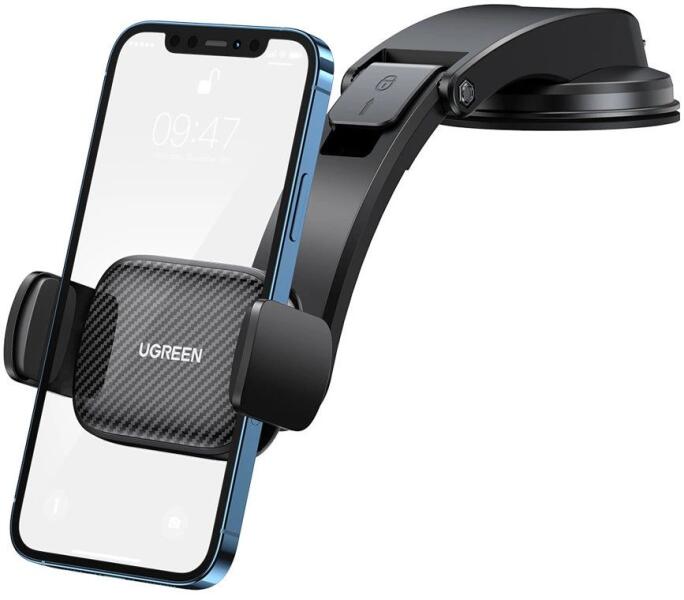 Ugreen clamp autós telefontartó tapadókoronggal, fekete (LP370) Autós tartó, amely a műszerfalra szerelhető. A kütyü könnyen használható, csak helyezze rá a telefont és szorítsa meg a pofákat, hogy stabilizálja a kiválasztott pozícióban. Széles beállítási tartománya és a karcolások ellen védő gumiborítások értékes előnyei, amelyeket minden felhasználó értékeln