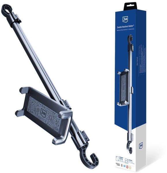 3mk up double fejtámla tartó Maximális kényelem és utazási kényelm Universal – kompatibilis a 4.7-12.9 hüvelykes eszközökkel Rugalmas – szélesség állíthatósági funkció 480-800 mm tartományban Tartós – porszórt fekete alumínium kivitel Intuitív - könnyű változtatás a tartó pozícióján és az eszköz beállításain Gyerekeknek - lehetőség arra, hogy optimális t