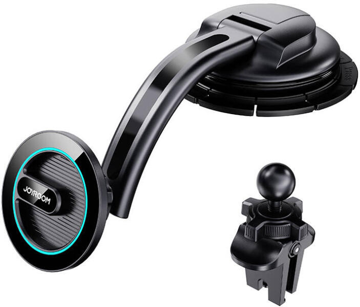 Joyroom JR-ZS366-W mágneses autós tartó műszerfalra/légbeömlőre (fekete) A Joyroom tartó tökéletes helyet talál az autójában, függetlenül attól, hogy milyen modellt vezet naponta. Kiváló minőségű anyagokból készült, szilárd támogatást nyújt a telefonjának a műszerfalon vagy a légbeömlőkön. Az erős mágnes segítségével kompatibilis a 12/13/14-es szériás iPhon