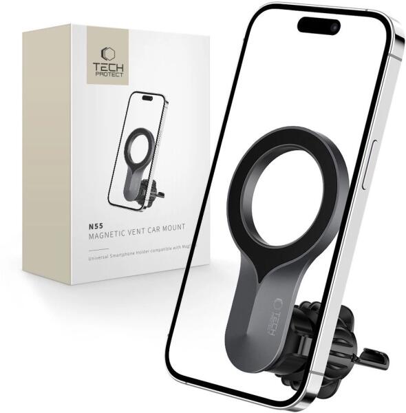 A Tech-Protect N55 autós tartó egy innovatív megoldás azoknak a mobilkészülék-használóknak, akik MagSafe technológiát használnak. Erős mágneses kialakításának köszönhetően a tartó azonnal és biztonságosan vonzza a telefonját, biztosítva a stabil és biztonságos tartást még egyenetlen felületen történő vezetés közben is. A Tech-Protect N55 forgatható kialakításs