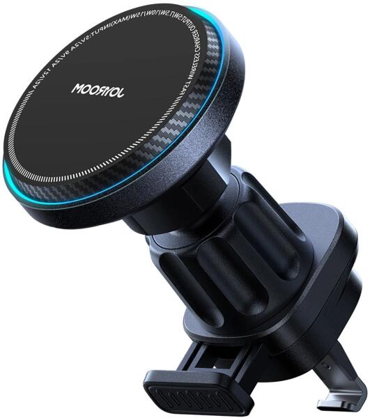 Modern autós tartó, amely a légbefúvóra vagy a szélvédőre/műszerfalra rögzíthető. Lehetővé teszi a gyors, 15W-os vezeték nélküli töltést, és az automatikus karzárás kényelmes használatot biztosít. A tartó a kényelmes és biztonságos autós utazásra lett tervezve. Kétoldalú töltési tekercsének köszönhetően lehetővé teszi a telefon gyors, vezeték nélküli tö