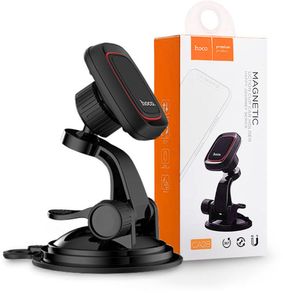 HOCO mágneses autós tartó a szélvédőre vagy a műszerfalra szerelve. A többfokozatú beállítás lehetővé teszi a telefon helyzetének egyéni igényekhez igazítását. A fogantyú több fokozatú beállítással rendelkezik, melynek köszönhetően magával a mágnessel beállítható a fogantyú és a forgófej optimális szöge. A műszerfalra vagy a szélvédőre ragasztható erős