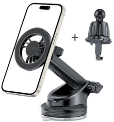 Gravitációs autós tartó a szellőzőhöz. Vezetés közben még göröngyös utakon is biztos fogást biztosít a készüléken, és garantálja az okostelefon kényelmes és biztonságos használatát. A markolat speciális gravitációs szerkezetének köszönhetően, amely a telefon belehelyezése után összecsukja és lezárja a karokat, a termék tökéletesen illeszkedik a készülékhe