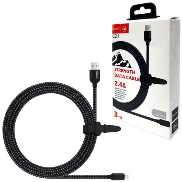 16783 Iphone kábel, 3m kábellel, 2,4A Termék jellemzői: - A kábel szövet borítással van ellátva a hosszabb élettartam miatt. - Max teljesítmény 2,4A - Kábel hossz: 3m - Feszültség: 12V