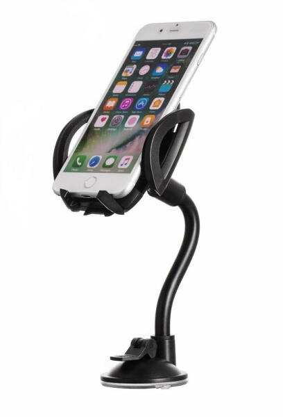 Szélvédőre helyezhető univerzális telefon és GPS tartó bármely készüléktípushoz, tapadókorongos, könnyen felhelyezhető, a szélvédőn nem hagy nyomot. A tartó 90 fokban dönthető és 180 fokban forgatható.