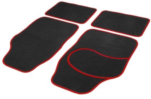Carguard Univerzális textil autószőnyeg szett , 64 x 44 cm / 44 x 29 cm , fekete, piros, 55834B Univerzális, textil autószőnyeg készlet, amely fekete színű, szürke körvonallal és különféle típusú járművekhez készült. A