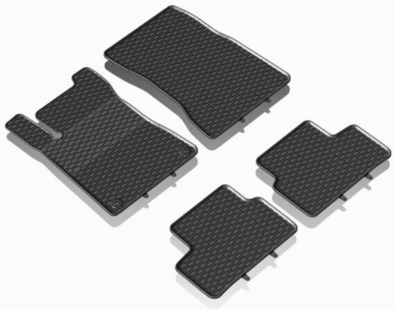 -Prémium minőségű utángyártott méretpontos gumiszőnyeg szett fekete színben-Csúszásgátlós hátlap-A szőnyegek a képen látható gyári lefogatású patentekkel vannak szerelve. -A Geyer az egyetlen európai gyártó, amely saját maga által előállított prémium minőségű gumival dolgozik, nem használ nehézfémeket ezért egyedüliként PZH és TÜV minősítéssel rendelkezn