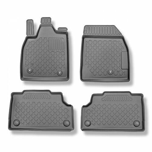 Ford Mustang Mach-E gumiszőnyeg, Ford Mustang Mach-E méretpontos hótálca. Méretpontos gumiszőnyeg. Kiváló minőségű, kopásálló, szagtalan peremes gumiszőnyeg Ford Mustang Mach-E 2021-től gyártott autókhoz. Ford Mustang Mach-E gumiszőnyeg jellemzői: Kb 2-3 cm-es peremmel rendelkezik. Gyári rögzítési pontokhoz kapcsolódik. A rögzítőkészlet az első szőnyegek rögzítés