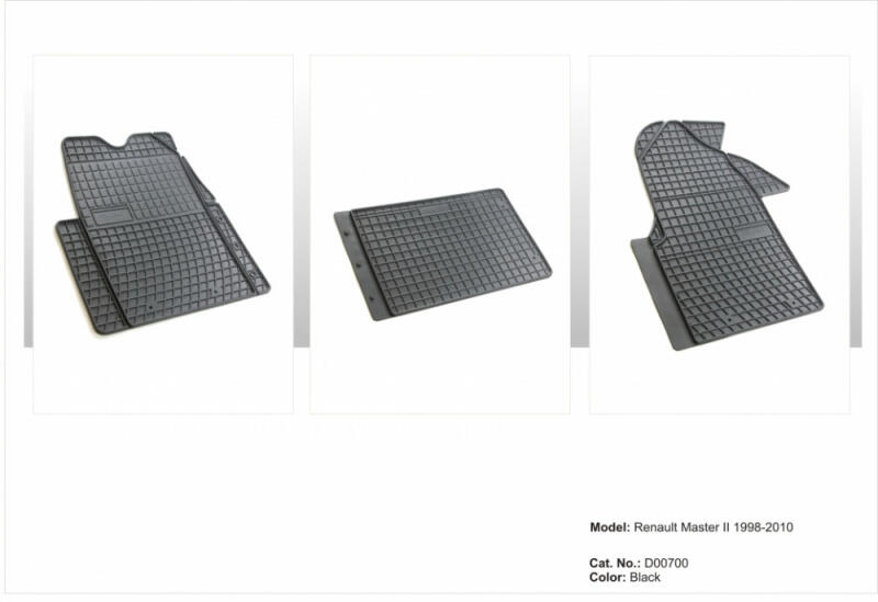 Frogum gumiszőnyeg garnitura Renault Master II 2003-2010 (D00700) A prémium fekete színű Frogum gumiszőnyeg garnitura Renault Master II 2003-2010 (D00700) az autó kárpitját gyári minőségű anyagból védve megőrzi újszerű állapotát. Sarok erősítéssel rendelkezik a vezetőoldalon, míg teljes méretpontossággal és szagtalanul biztosítja a tökéletes illeszkedést. Optimalizá