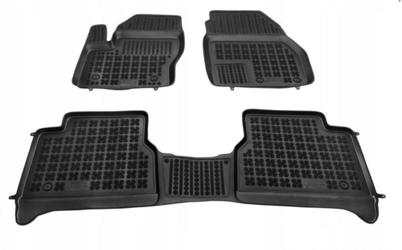 Fekete szőnyeg – kiváló minőségű gumiból. A szőnyeg profilozott éllel rendelkezik, amely megakadályozza, hogy a szennyeződés az autó padlójára kerüljön. A szőnyeg könnyen tisztítható, tetején és alján is csúszásgátló minták találhatók. A nagy tömegű anyag hatékonyan védi az autót a szennyeződéstől és a nedvességtől. A szőnyeg univerzális, és a legtöb