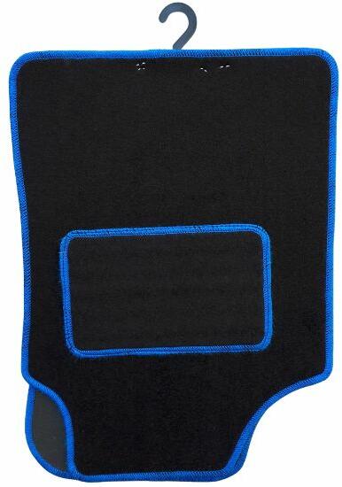 Velur Univerzális autószőnyeg 4 db-os szett, fekete, kék varrással 4 szőnyegből álló készletünk univerzálisan illeszkedik járműve belső kialakításához, és elegáns megjelenést kölcsönöz. A szőnyegek kiváló minőségű