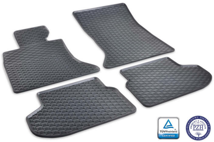 Újrahasznosított anyagokból készült, kiváló minőségű autószőnyeg. A szőnyeg méhsejt mintázatú, amely megakadályozza a víz vagy az olvadó hó átfolyását a szőnyegen. Az autószőnyegek pereme körülbelül 1 cm magas. Tökéletesen illeszkednek az adott jármű belterébe. Az autószőnyegeket a csehországi Gumárny Zubří gyártja, amely 1938 óta működik.