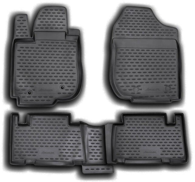 Fiat Doblo gumiszőnyeg, Fiat Doblo méretpontos hótálca. Méretpontos gumiszőnyeg. Gyári minőségű, kopásálló, szagtalan gumiból készült peremes gumiszőnyeg Fiat Doblo II 7 üléses 2010-től 2022-ig gyártott autókhoz. Négyrészes autó gumiszőnyeg garnitúra. A Fiat Doblo gumiszőnyeg jellemzői: Kb 3-4 cm-es peremmel Fekete színben 100% méretpontos Gyári minőségű Kopásá