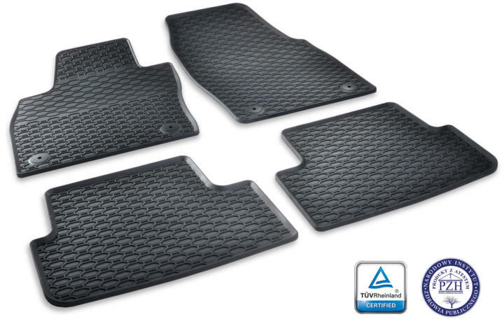 -Prémium minőségű utángyártott méretpontos gumiszőnyeg szett fekete színben-Csúszásgátlós hátlap-A szőnyegek a képen látható gyári lefogatású patentekkel vannak szerelve. -A Geyer az egyetlen európai gyártó, amely saját maga által előállított prémium minőségű gumival dolgozik, nem használ nehézfémeket ezért egyedüliként PZH és TÜV minősítést. -Cipő saro