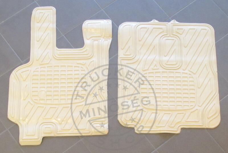 Méretpontos gumiszőnyeg párban. Stílusos BÉZS színű gumiból (anyagában színezett). Segít tisztán tartani a jármű belsejét, mégis sokkal hangulatosabb mint a klasszikus fekete gumiszőnyeg. Típusok: DAF XF/ CF sorozat 2013-ig A különböző fülkék számára előre berajzolt vonalak mentén vágható.