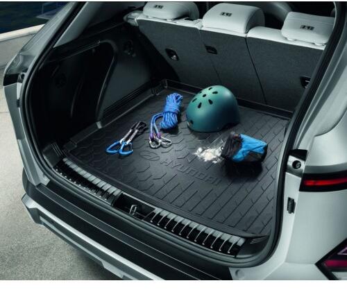Méretpontos, eredeti Hyundai Kona csomagtértálca. Hyundai Kona 2023-tól gyártott autókhoz. Hyundai Kona gyári csomagtértálca, méretpontos, tökéletesen illeszkedő. Gyári, kopásálló, szagtalan gumiból készült peremes gumi csomagtartó tálca Hyundai Kona autókhoz. A Hyundai Kona gumiszőnyeg jellemzői: Kialakítása pontos illeszkedést és tökéletes funkcionalitást biztosí