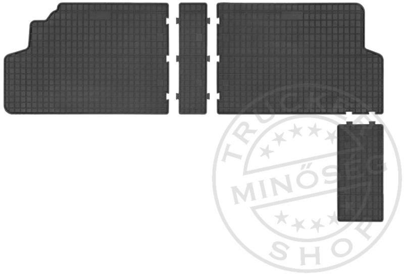 Méretpontos gumiszőnyeg a második üléssor elé. A szett négy darab, egymásba pattintható részből áll. Könnyen tisztítható, peremes, csúszásgátlós kivitel. Rácsos felületének köszönhetően sok szennyeződést tud megtartani. Praktikus és esztétikus felszerelés. Típus: Citroen Jumpy 2007-2016-ig