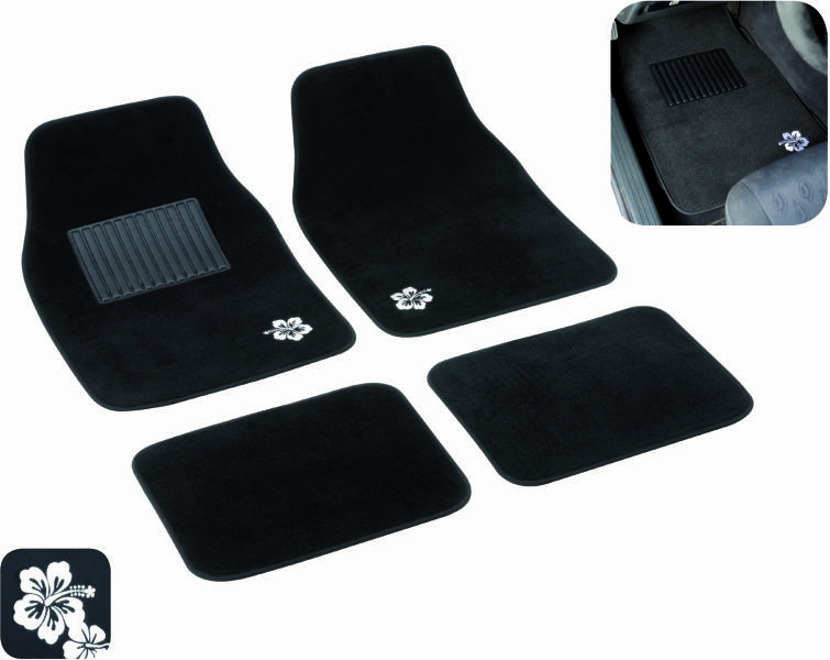 Kifejezetten hölgyek számára készült prémium minőségű filc alapanyagú, hímzett univerzális szőnyeg garnitúra, mely önmagában is mutatós, de a hozzá kapható kiegészítőkkel teljesen egyedi lesz az autó beltere. Ugyanis ebből a mintából vásárolható hozzá üléshuzat, kormányvédő és övpárna is. Ez a textilszőnyeg ráadásul teljesen univerzális. Az autók 99%-ban