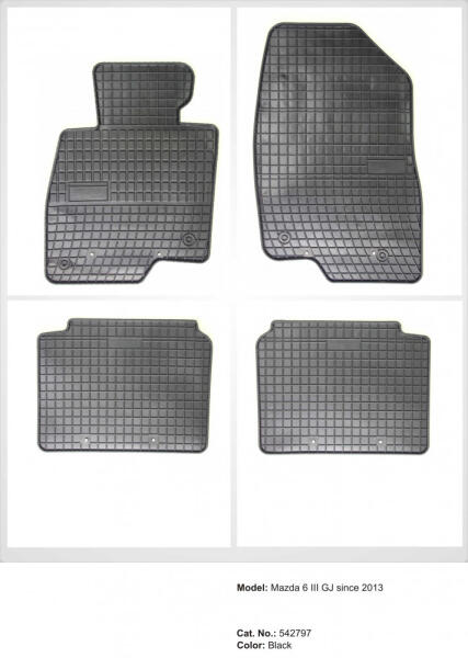 Frogum gumiszőnyeg MAZDA 6 III GJ 2013- (542797) A prémium fekete színű Frogum gumiszőnyeg MAZDA 6 III GJ 2013- (542797) az autó kárpitját gyári minőségű anyagból védve megőrzi újszerű állapotát. Sarok erősítéssel rendelkezik a vezetőoldalon, míg teljes méretpontossággal és szagtalanul biztosítja a tökéletes illeszkedést. Optimalizált védelem sártól, folyadékokt