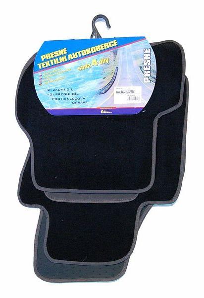 Pontos textil autószőnyegek a Škoda Octavia II-hez. Gyártási év 2008 óta. 4 darabos készlet (2 x elülső, 2 x hátsó rész). Fekete kivitelű, szürke díszítéssel és a pedálok alatti szürke szőnyeg megerősítéssel.