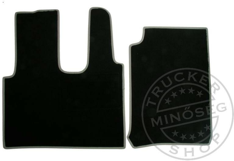 Méretpontos filc szőnyeg csúszásgátlós hátoldallal lábhoz, párban. A vezető sarkánál külön erősítéssel. Kamion típus: Mercedes MP4 (2012-től), keskeny fülkével