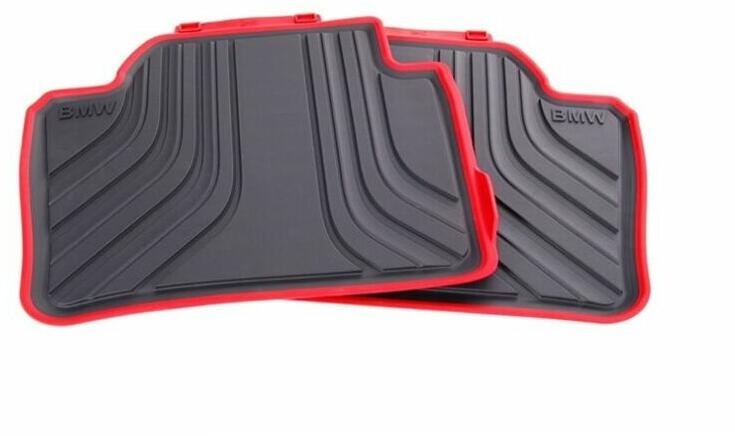 Gyári BMW F30 F31 F36 GT F80 M3 Allweather fekete-piros (Anthracit) első gumiszőnyeg szett (X-Drive öszerekeshez is jó)-2012-2018 közötti összes kivitelhez (gyárilag a sport csomagost szerelték ezzel a színnel)-Cikkszám: 51472219803-az ár 1 készletre vonatkozik