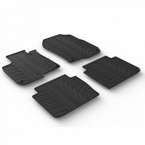 -Utángyártott méretpontos gumiszőnyeg szett fekete színben-Csúszásgátlós hátlap-Jó minőségű lengyel termék, több nagy autógyártó gyári beszállítója-4db-os készlet-A rögzítő patent helyek típuson belül is eltérhetnek, csak abban az esetben lyukkassza át ha megegyezik. A szett tartalmaz: 1db vezetőoldali gumiszőnyeget 1db utasoldali gumiszőnyeget 2db hátsó gumisz