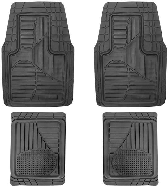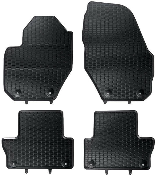Univerzális autós gumiszőnyeg szett - 72 x 47 cm, 71 x 43,5 cm - PVC - feke Ez a 4 darabos, autós gumiszőnyeg szett kiváló megoldás a jármű belső terének védelmére és tisztántartására. A szőnyegek strapabíró PVC anyagból készültek, amely ellenáll a kopásnak, a sárnak, víznek és egyéb szennyeződéseknek, így hosszú távon is biztosítják a tisztaságot. A mély min