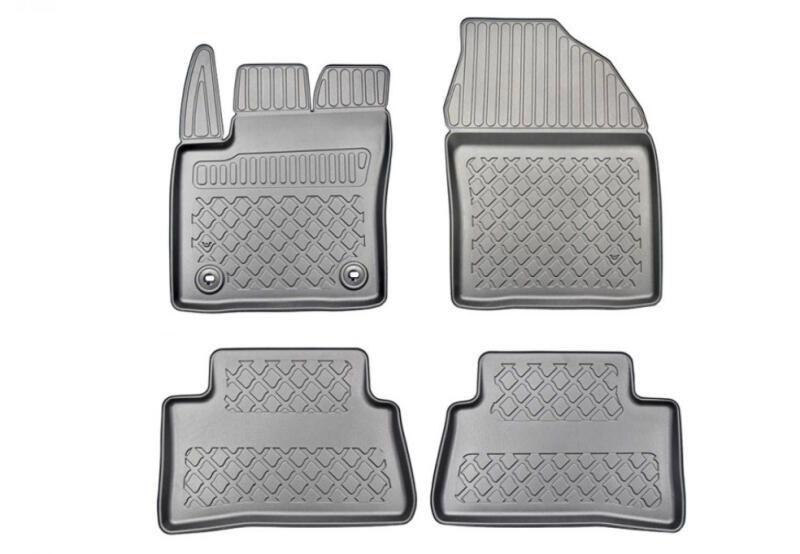 -Prémium minőségű utángyártott méretpontos gumiszőnyeg szett fekete színben-Csúszásgátlós hátlap-A szőnyegek a képen látható gyári lefogatású patentekkel vannak szerelve. -A Geyer az egyetlen európai gyártó, amely saját maga által előállított prémium minőségű gumival dolgozik, nem használ nehézfémeket ezért egyedüliként PZH és TÜV minősítést. -Cipő saro