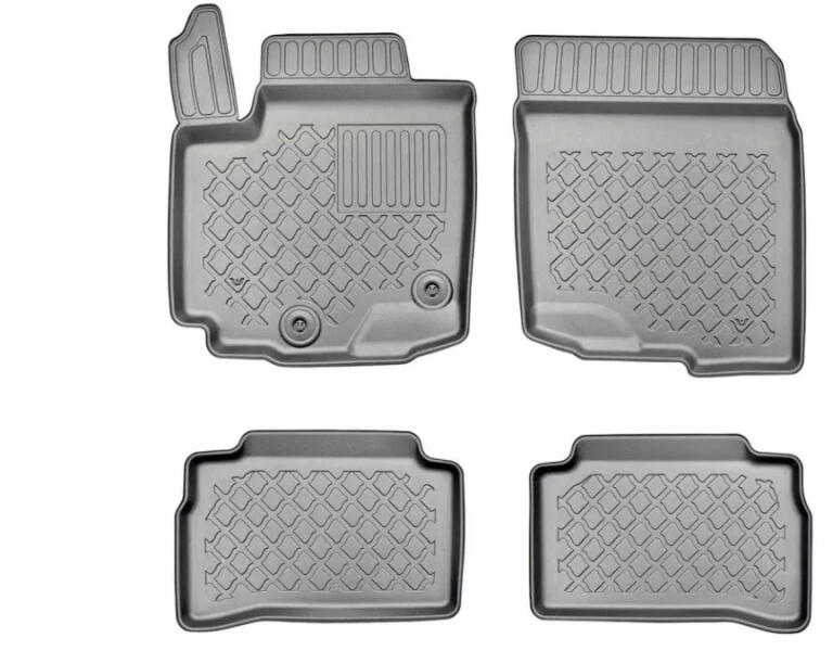 Mazda 2 gumiszőnyeg, Mazda 2 méretpontos hótálca. Méretpontos gumiszőnyeg. Gyári minőségű, kopásálló, szagtalan gumiból készült peremes gumiszőnyeg Mazda 2 2006-tól 2014-ig gyártott autókhoz. Négyrészes autó gumiszőnyeg garnitúra. A Mazda 2 gumiszőnyeg jellemzői: Kb 3-4 cm-es peremmel Fekete színben 100% méretpontos Gyári minőségű Kopásálló Szagtalan gumiból k
