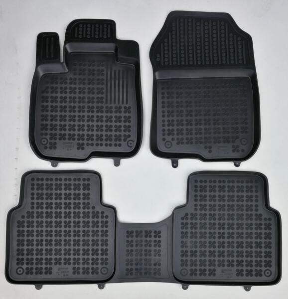 Toyota C-HR gumiszőnyeg, Toyota C-HR méretpontos hótálca. Méretpontos gumiszőnyeg. Gyári minőségű, kopásálló, szagtalan gumiból készült peremes gumiszőnyeg Toyota C-HR 2016-2023-ig gyártott autókhoz. Háromrészes autó gumiszőnyeg garnitúra. A Toyota C-HR gumiszőnyeg jellemzői: Kb 3-4 cm-es peremmel Fekete színben 100% méretpontos Gyári minőségű Kopásálló Szagtalan