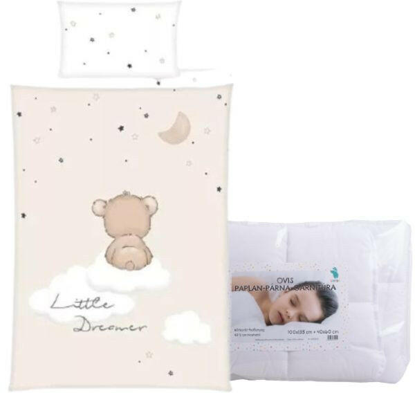 : szett tartalma 1 db ágyneműhuzat 100x135 cm-es méretben 1 db párnahuzat 40x60 cm-es méretben 1 db paplan 100x135 cm-es méretben ( 300g ) 1 db párna 40x60 cm-es méretben ( 70g ) a paplan-párna anyaga 100% poliészter : gyerekágynemű anyaga 100% pamut : mi, mit jelent? kattintside Macis ovis ágynemű szett (Little dreamer) Kihagyhatatlan szettes ajánlat, melyben most még kedvezőbb