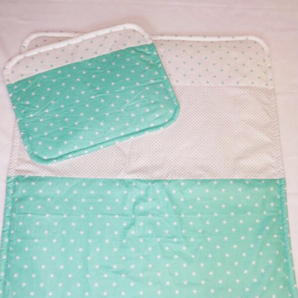 szett tartalmaz egy szép párnát mackó füllel és egy paplant, finom töltelékkel, szilikon polárral. A kétoldalas szett kiváló minőségű anyagokból készült-színes pamutból és egy nagyon szép bársonyszövetből, amely minden babát megvigasztal. A készlet tökéletes babakocsihoz, kiságyhoz, bölcsőhöz vagy szőnyegként baba számára. A párna maga is bújós játékként