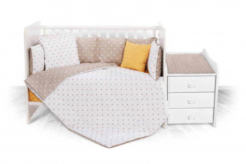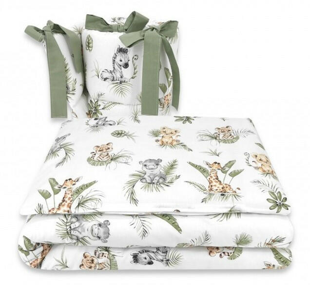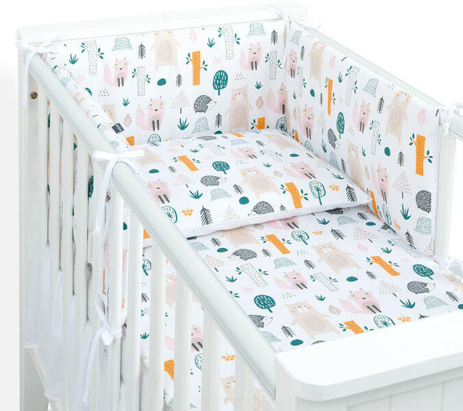 MTT 3 részes ágyneműhuzat szett: Párnahuzat mérete: 40x60 cm (+/- 3cm) Paplanhuzat mérete: 100x135 cm (+/- 3cm) Rácsvédő mérete: 30x180 cm (+/- 3cm) A rácsvédő 8 hosszú, szépen varrott pánttal rendelkezik, melynek köszönhetően fixálható a kiságy rácsaihoz. A rácsvédő töltete szilikonizált bolyhos nem szőtt anyag, 450g/m2 tömeggel - első osztályú minőség! 100% pam