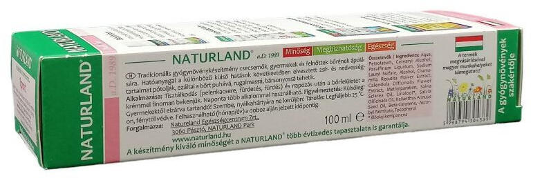 Tradicionális gyógynövény készítmény csecsemők, érzékeny bőrű gyermekek és felnőttek bőrének ápolására. 100 ml-es krém; Naturland termék baba bőrápoláshoz.