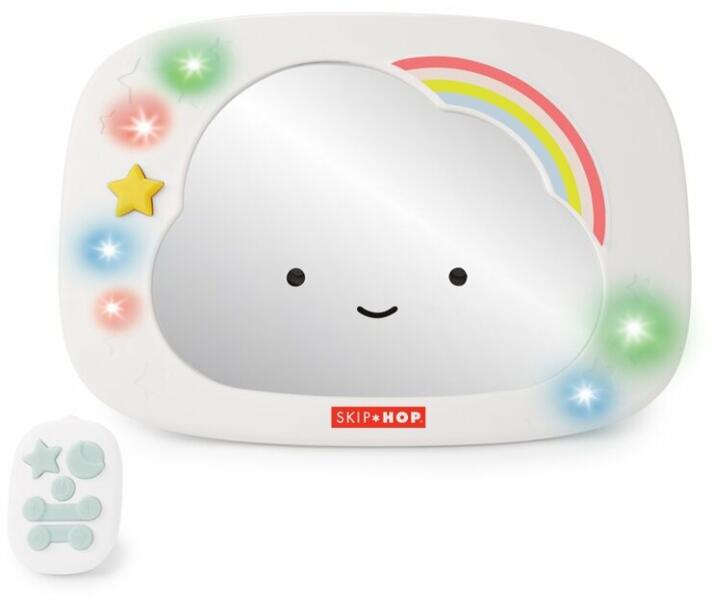 Szórakoztassa, nyugtassa meg és figyelje a babát ezzel a cuki hátsó ülésre szerelhető gyermektükörrel. Az édes felhő design zenével, fehér zaj hangokkal és színes fényekkel is rendelkezik, valamint távirányítóval is ellátott, így könnyen beállítható a gyermek igényei szerint kényelmesen és biztonságosan. Jellemzők: 2 különböző mód beállítása, aszerint, hogy