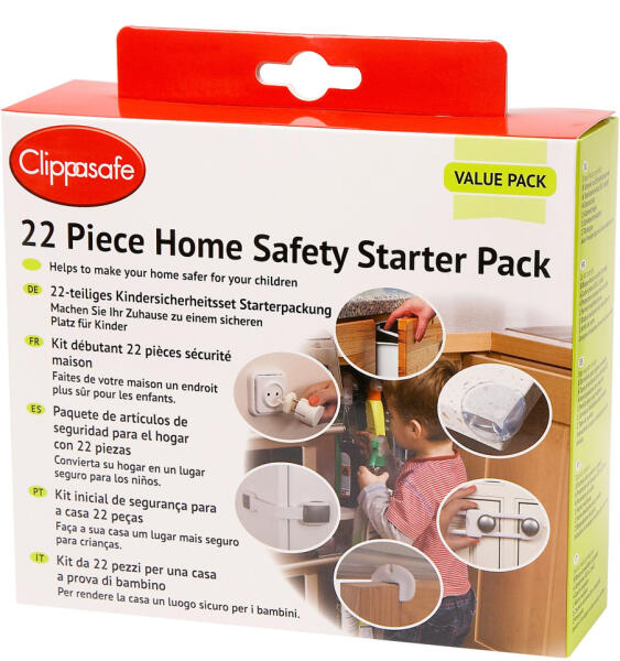 Bababiztonság a lakásban Clippasafe 24 db-os biztonsági készlet A 24 darab hasznos eszközt tartalmaz, a szettnek köszönhetően bababiztossá teheted a lakást. A szett artalma: 8 db konnektordugó, 4 db sarokvédő, 6 db szekrény- és fiókzár, 1 db ajtóbecsapódás-gátló, 2 db rövid univerzális öntapadós zár, 1 db hosszú univerzális öntapadós zár, 1 db WC-zár, 1 db hűtőz