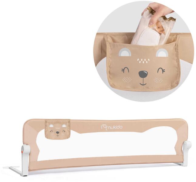 Termék részletekÁgytorlasz az ágyon az ágyon az ágyon Nukidotartós keret könnyű, de erős acélból készültzseb - hasznos tárolóhely a kisebb tárgyak számáragyors összeszerelés - csak csavarozza az ágykeretreZárrendszer - véd a véletlen összecsukódás ellenSafetyBelttartós és szellős háló - lehetővé teszi, hogy figyelje az alvó babátA Nukido ágy biztonsági korlátja kiküszöböli