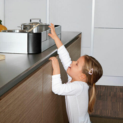 A Reer tűzhelyvédője a konyha elengedhetetlen kelléke egy kisgyermekes családnál. A biztonságosan rögzített esztétikus kialakítású védőlap megakadályozza, hogy gyermeke forró edények érintéséből, vagy lerántásából, esetleg a láng, vagy sütőlap érintéséből fájdalmas és életveszélyes sérüléseket szenvedjen. Egyszerű le- és felszerelés: Kétoldalú ragaszt