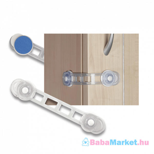 Megakadályozza, hogy gyermeke eltolja a fiókokat, és védi ujjait a becsípődéstől. Bármilyen típusú szekrényhez illik. A szekrény kinyitásához nem kell lehúzni az egész zárat, egyszerűen csak nyissa ki az eszköz egyik oldalát, majd zárja be. Könnyen felszerelhető. Kétoldalas ragasztószalaggal rögzíthető A zár felragasztása előtt a felületet le kell mosni és zsírta