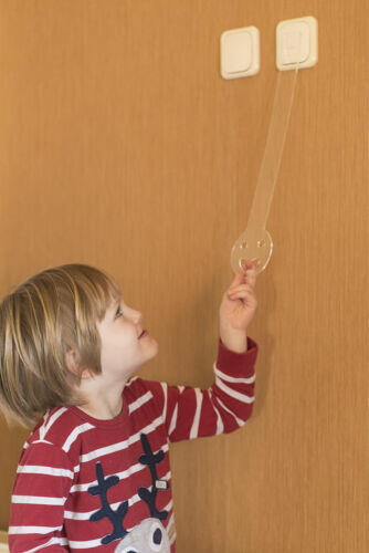 Villanykapcsolóra rögzíthető segédeszköz, mellyel gyermeke önállóan képes működtetni a magasan lévő kapcsolókat. Könnyítse meg életét és segítse gyermeke önállóságának kialakulását a BeSmall Handy termékével. A BeSmall Handy 40 cm-el hosszabbítja meg "gyermeke karját", melynek segítségével egy apró mozdulattal képes lesz a hagyományos kapcsolókat működtetni
